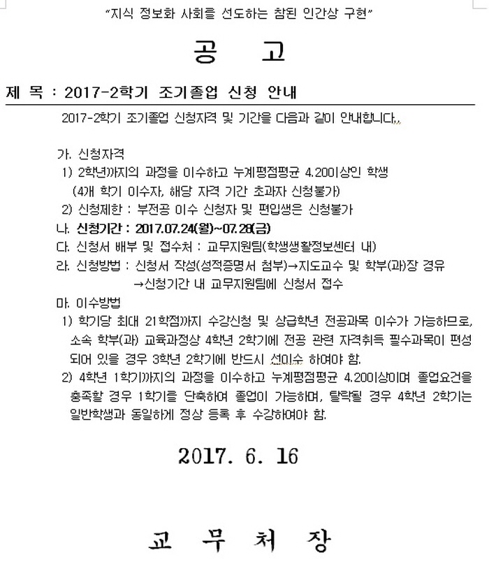 > 학과공지 > 2017-2학기 조기졸업 신청 안내